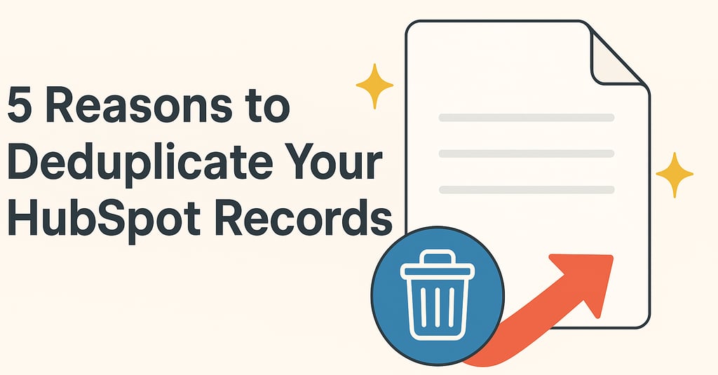 Duplicate records in HubSpot donāt just clutter your CRM ā they drain revenue, wreck reporting, and confuse your sales and marketing teams. Learn five key reasons why cleaning and deduping your HubSpot data is one of the smartest moves you can make for sales, marketing, and customer trust.